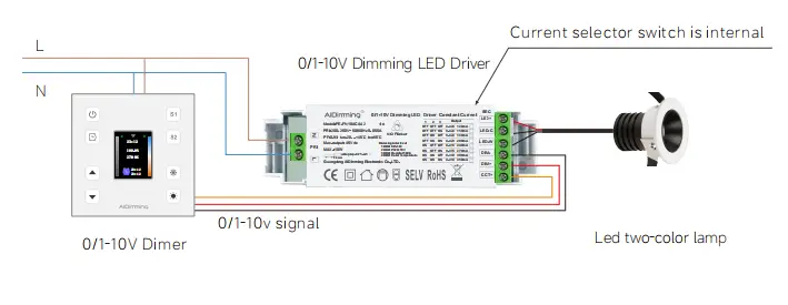 1. Kun 0 / 10 V:n himmennin on säädetty maksimiarvoon 10 V, lähtövirta saavuttaa 100 % ulostulotehosta ja kirkkaus saavuttaa 100 %. Kun 0-10V himmennin on säädetty arvoon 0V, virta on
