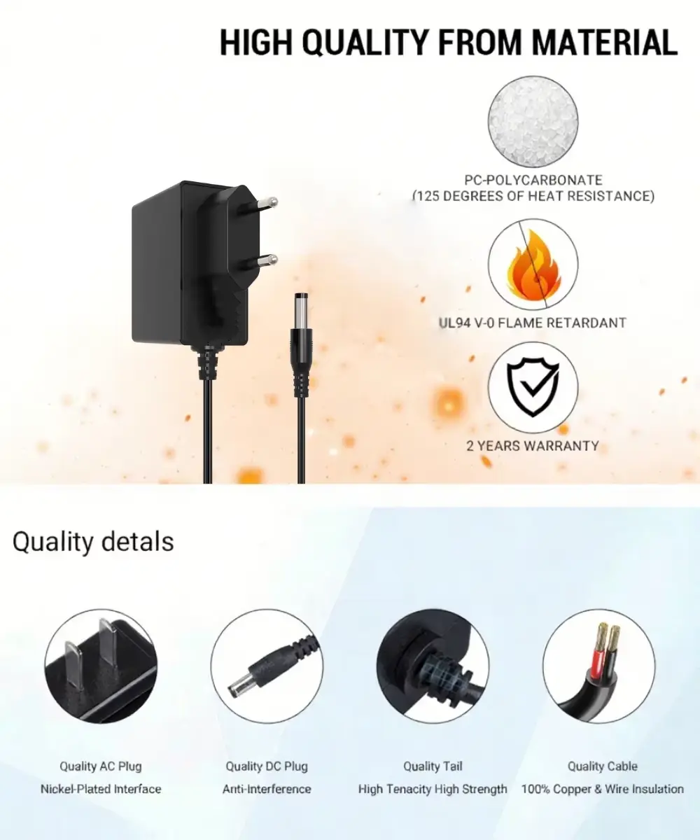 Valitse 12 V:n 1,5 A eurooppalainen pistokeseinävirtasovitin saadaksesi luotettavan, korkealaatuisen virtalähteen, joka täyttää kaikki tarpeesi.