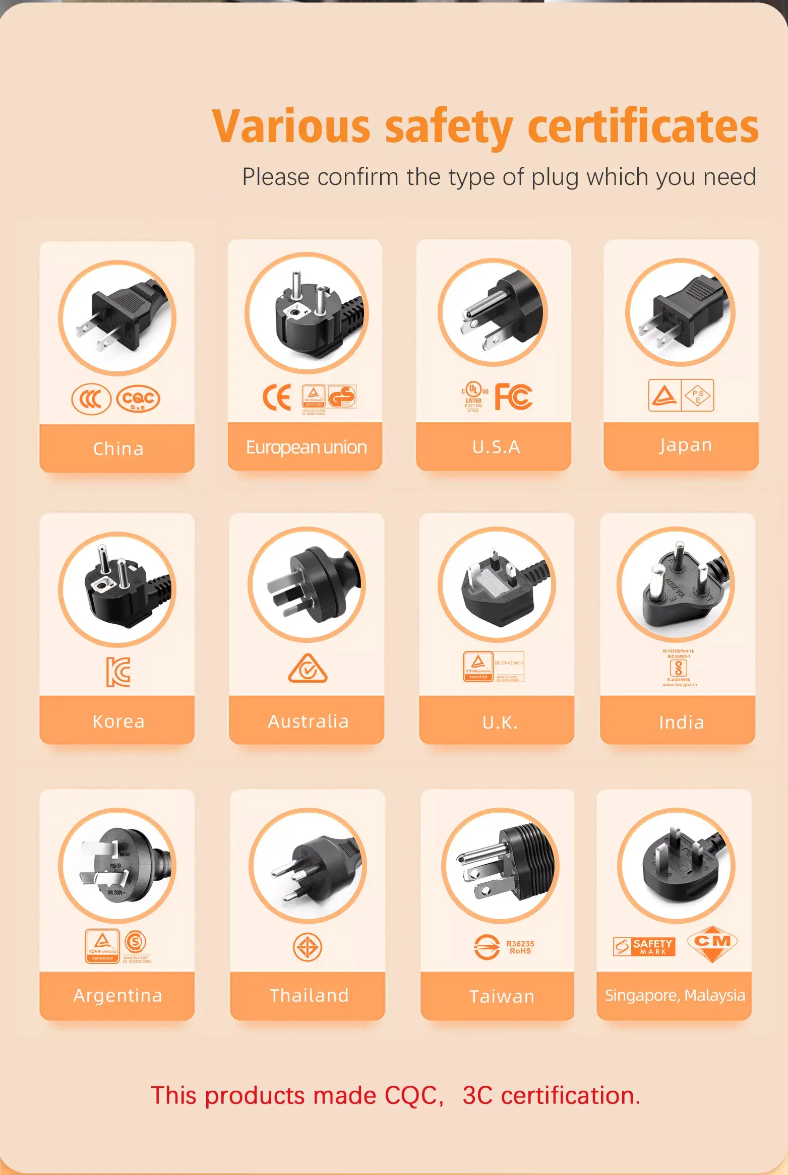 Tulojännite: Tyypillisesti AC 100-240V (50/60Hz), sopii maailmanlaajuisiin sähköverkkoihin.