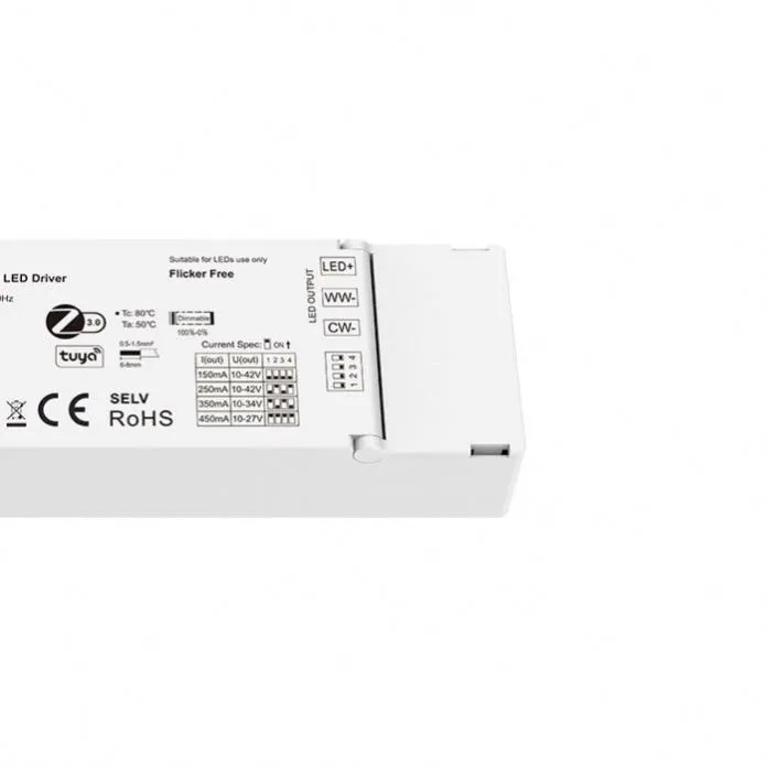 STARWELL-tehtaan CE-sertifioidut 12W TUYA Zigbee CCT himmennettävät LED-ajurit ovat tehokkaita älykkäitä valaistusratkaisuja, jotka on suunniteltu nykyaikaisiin asuin- ja liiketilojen valaistusjärjestelmiin. Se tukee laajaa tulojännitettä 100–240 VAC 50/60 Hz, mikä mahdollistaa vakaan maailmanlaajuisen sovelluksen. Max.12W:n nimellislähtöteholla tämä ohjain toteuttaa sujuvan CCT-himmennyksen ohjauksen langattomaan TUYA Zigbee -protokollaan, jolloin käyttäjät voivat säätää sekä kirkkautta että värilämpötilaa etänä APP:n, ääniavustajien ja älykkäiden kohtausten kautta.