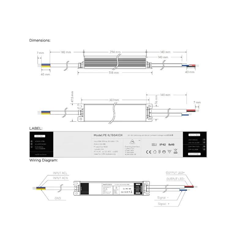 Tukevalla alumiinikotelolla varustetussa korkean suorituskyvyn vakiojännitehimmentävässä LED-ohjaimessa on ylijännite-, ylivirta-, oikosulkusuojaus ja ylilämpötilasuoja, mikä varmistaa luotettavan toiminnan ankarissakin olosuhteissa. Kompakti, kevyt ja helppo asentaa, se sopii upotettuihin, pinta- tai riippuvaloihin LED-valaisimiin vähittäiskaupan valaisimista toimistojen paneelivaloihin ja hotellien alasvaloihin.