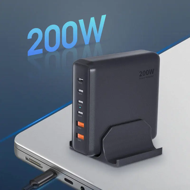 GAN 200 W pikalaturi 4 USB-C + 2 USB-A 200 W PD-laturi