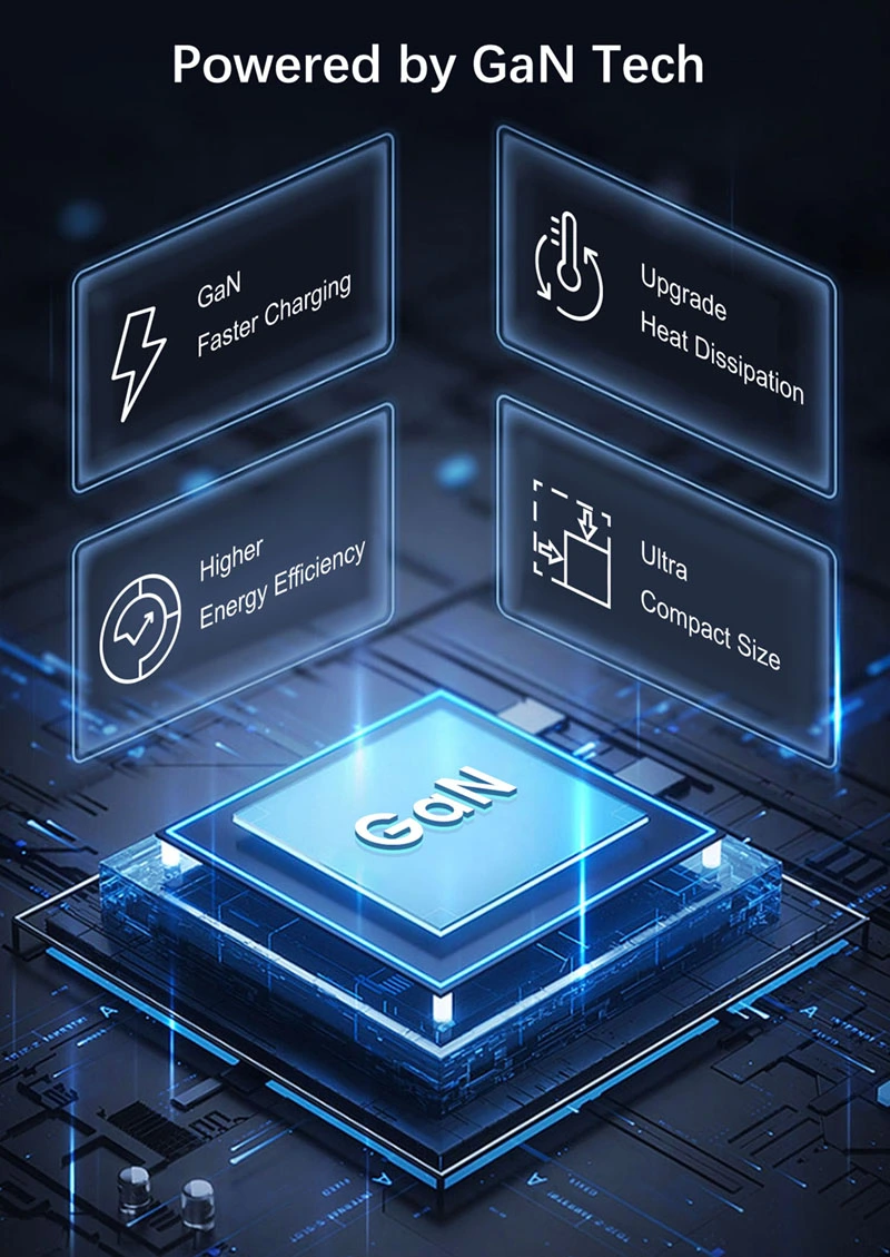 Nopea lataus: GAN 200 W:n sisäänvedettävä pikalaturi tarjoaa tehokkaan 200 watin tehon, mikä varmistaa laitteidesi nopean latauksen.