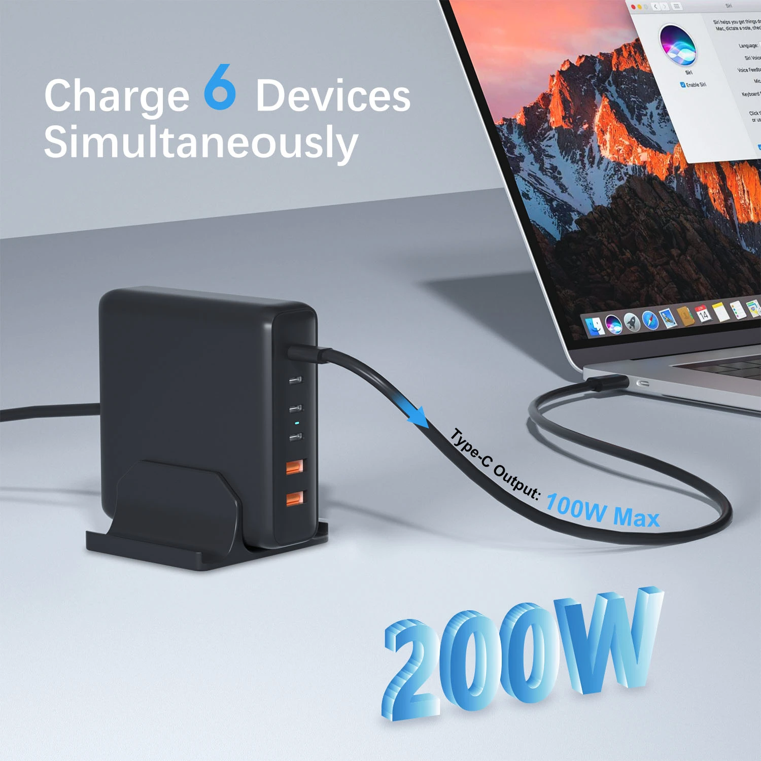 200 W:n pöytälaturi PD-laturi 6-tyypin c-portilla, 200 W:n GAN-pikalaturi, jonka valmistaa Shenzhen Starwell Technology Co., Ltd. Kiinalainen tuotannon voimanpesä, korkealaatuista edulliseen hintaan.