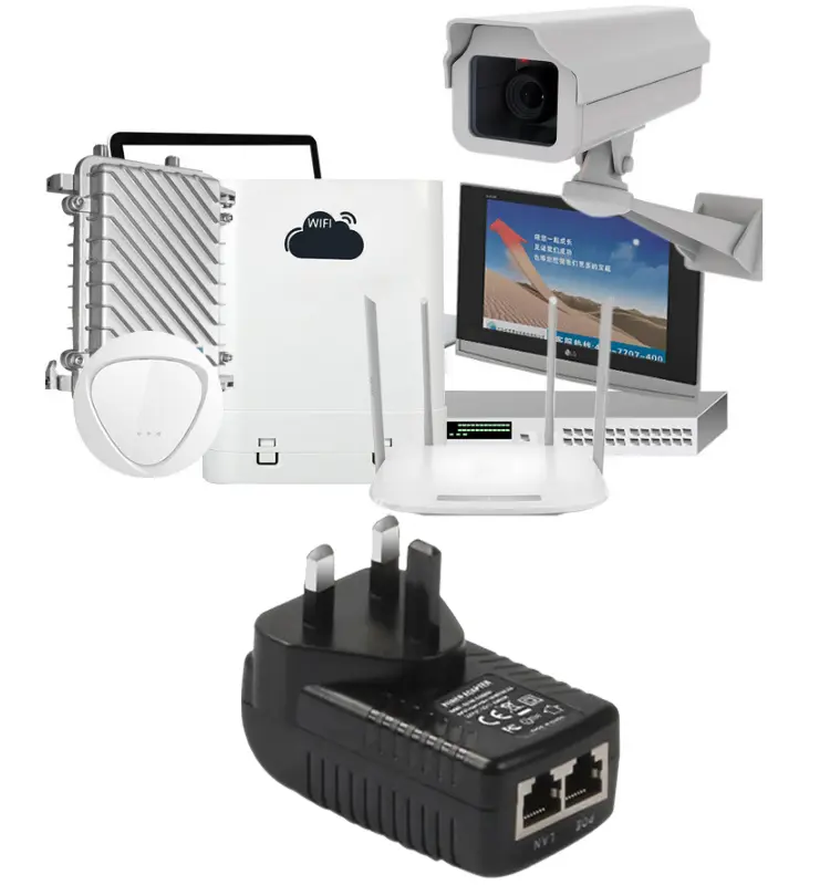 Tämä 24V 1A POE-seinäsovitin tukee sekä 24V 1A että 48V 0.5A ulostuloa ja sopii yhteen erilaisiin 24V ja 48V POE-laitteisiin. Kaksiporttinen POE-suuttimen rakenne mahdollistaa kahden laitteen virran syöttämisen samanaikaisesti, mikä parantaa huomattavasti asennuksen joustavuutta ja tehokkuutta.
