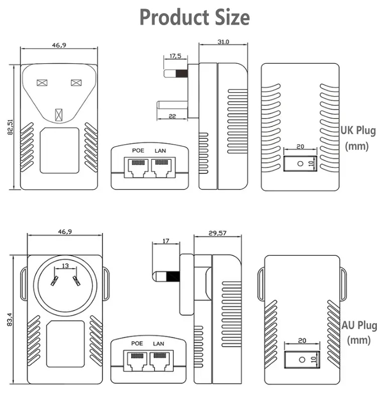 Kompakti seinäpistokerakenne mahdollistaa suoran käytön tavallisten pistorasioiden kanssa ilman ylimääräisiä kiinnikkeitä tai johdotuksia. Tämä 24V 1A 48V 0.5A POE-suutin säästää tilaa ja yksinkertaistaa kaapelointia, joten se on ihanteellinen valinta kotiin, toimistoon, kauppaan ja pieniin valvontajärjestelmiin.