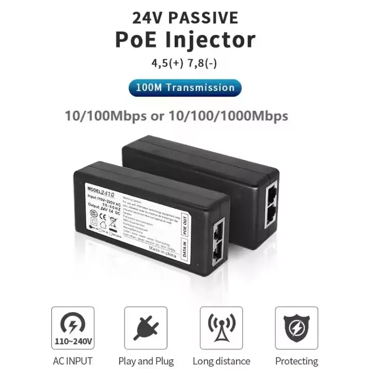 Tätä 24 V:n 1A Gigabitin passiivista POE-suutinta käytetään laajasti: