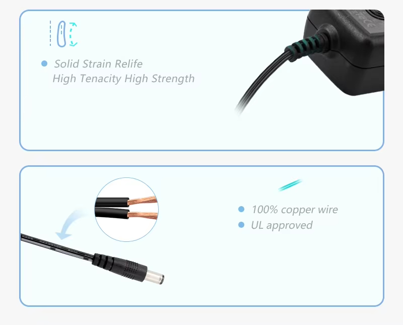Kattava turvallisuussuoja: Asetamme aina turvallisuuden etusijalle. Tässä virtalähteessä on sisäänrakennettu ylivirtasuoja (OCP) ja ylijännitesuoja (OVP), ja se on luotettava OCP OVP 24W vaihdettava adapteri led-valolle. Se voi tehokkaasti estää tahattomat oikosulut ja epävakaat jännitteet varmistaen, että LED-lamput ja muut arvokkaat laitteet ovat moitteettomassa kunnossa käytön aikana.