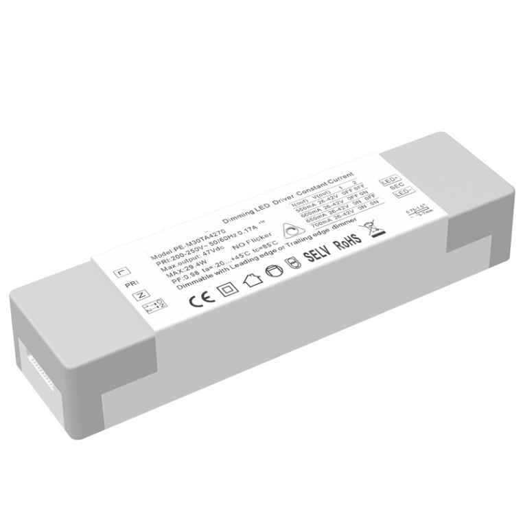 Korkealaatuisen 30 W:n tasavirtaisen triac-himmentävän LED-ohjaimen valmistaa Starwell, ammattimainen LED-ohjainvalmistaja Kiinassa. Tämä kestävä LED-ohjain on LED-valaistusjärjestelmiin räätälöity erikoisvirtalähde, joka yhdistää vakaan vakiovirran ja TRIAC-himmennyksen yhteensopivuuden valaistuksen suorituskyvyn ja energiatehokkuuden tasapainottamiseksi. 30 W:n nimellistehon ansiosta se sopii keskitehoisten LED-valaisimien (kuten alasvalot, paneelivalot ja ratavalot) kanssa ja varmistaa tasaisen virransyötön – estää tehokkaasti jännitevaihteluiden aiheuttamaa LEDien välkkymistä ja pidentää valaistuksen käyttöikää 30 % tai enemmän verrattuna epävakiovirran ohjaimiin.