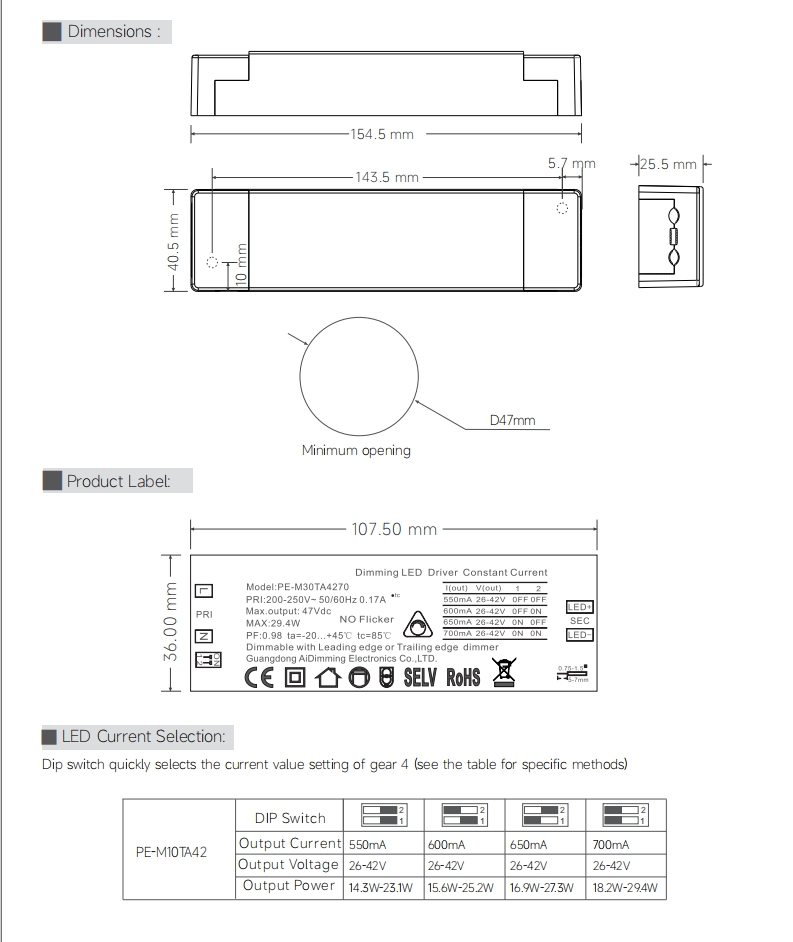 Erittäin pienikokoinen rakenne, käytetyt raaka-aineet ovat ensilinjan merkkejä, maahantuotu siru ultrasyvä himmennyssuunnittelu, yhteensopivuus eri eurooppalaisten merkkien himmentimien kanssa. Ylijännitesuoja 2KV, tasainen himmennys, välkkymätön, säädettävä virtarakenne, hiljainen himmennysprosessissa