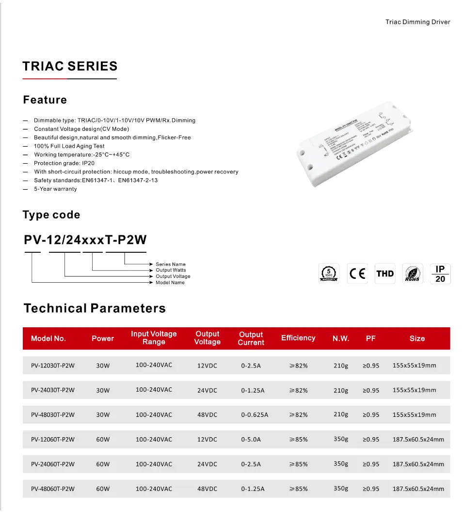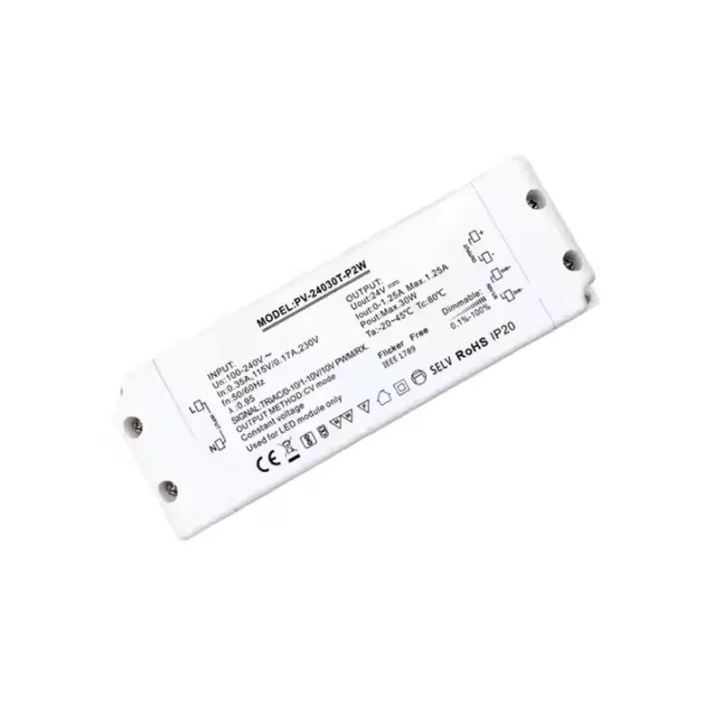 TRIAC 0-10V himmennettävä 30W vakiojännitevirtalähde, Starwell tarjoaa 5 vuoden takuun pitkän aikavälin laadunvarmistukselle. Sen kaikki ydinkomponentit on valmistettu teollisuusstandardien mukaisesti, ja niissä on erinomainen ylijännitekestävyys, korkeiden lämpötilojen kestävyys ja pitkäaikainen käyttövarmuus. Tämä 30 W:n vakiojännitteinen TRIAC-himmentävä LED-ohjain, joka yhdistää kaksimoodihimmennyksen, tasaisen jännitteen ulostulon, välkkymättömän tekniikan ja pitkän käyttöiän, on erinomainen valinta niille, jotka etsivät korkealaatuisia valaistustehosteita. Tervetuloa tiedustelemaan.