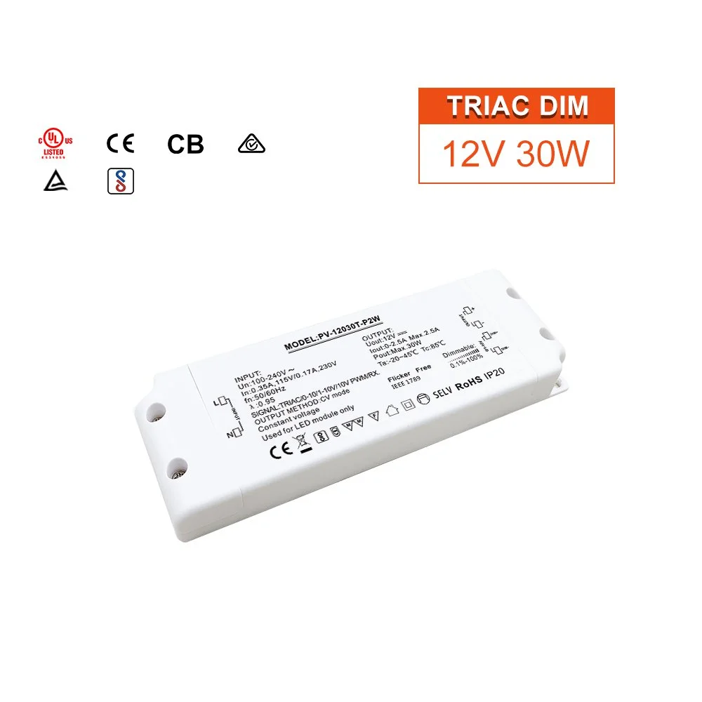 Vakaana vakiojännitteisenä virtalähteen Triac-himmentävänä led-ohjaimena se tarjoaa jatkuvan 12 V:n tasajännitteen ulostulon. Tässä 12 V:n 30 W:n triac-himmennettävässä virtalähteessä on korkealaatuiset komponentit ja edistynyt piirisuunnittelu, mikä varmistaa vakaan lähtöjännitteen koko himmennysalueella ja eliminoi valojen välkkymisen. Se on todella välkkymätön triac-himmentävä led-ohjain sisäkäyttöön. Sen välkkymätön ominaisuus ei ainoastaan luo mukavaa ja terveellistä visuaalista ympäristöä, vaan myös suojaa tehokkaasti herkkiä LED-valolähteitä ja -moduuleja, mikä pidentää valaisimien käyttöikää.