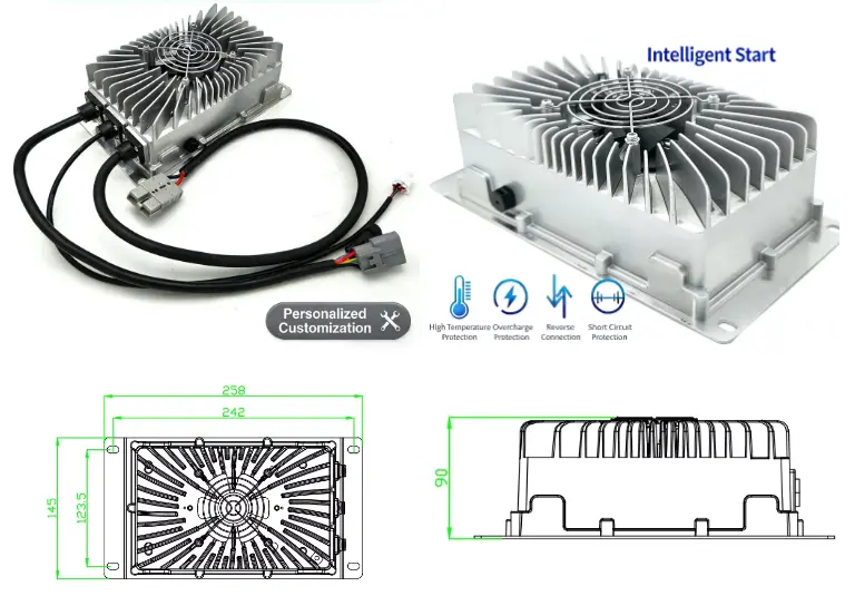 · Monijännitemallit: Saatavana 24 V (15 A), 36 V (10 A), 48 V (8 A), 60 V (6 A) ja 72 V (5 A) erilaisiin sähkökäyttöisiin järjestelmiin.