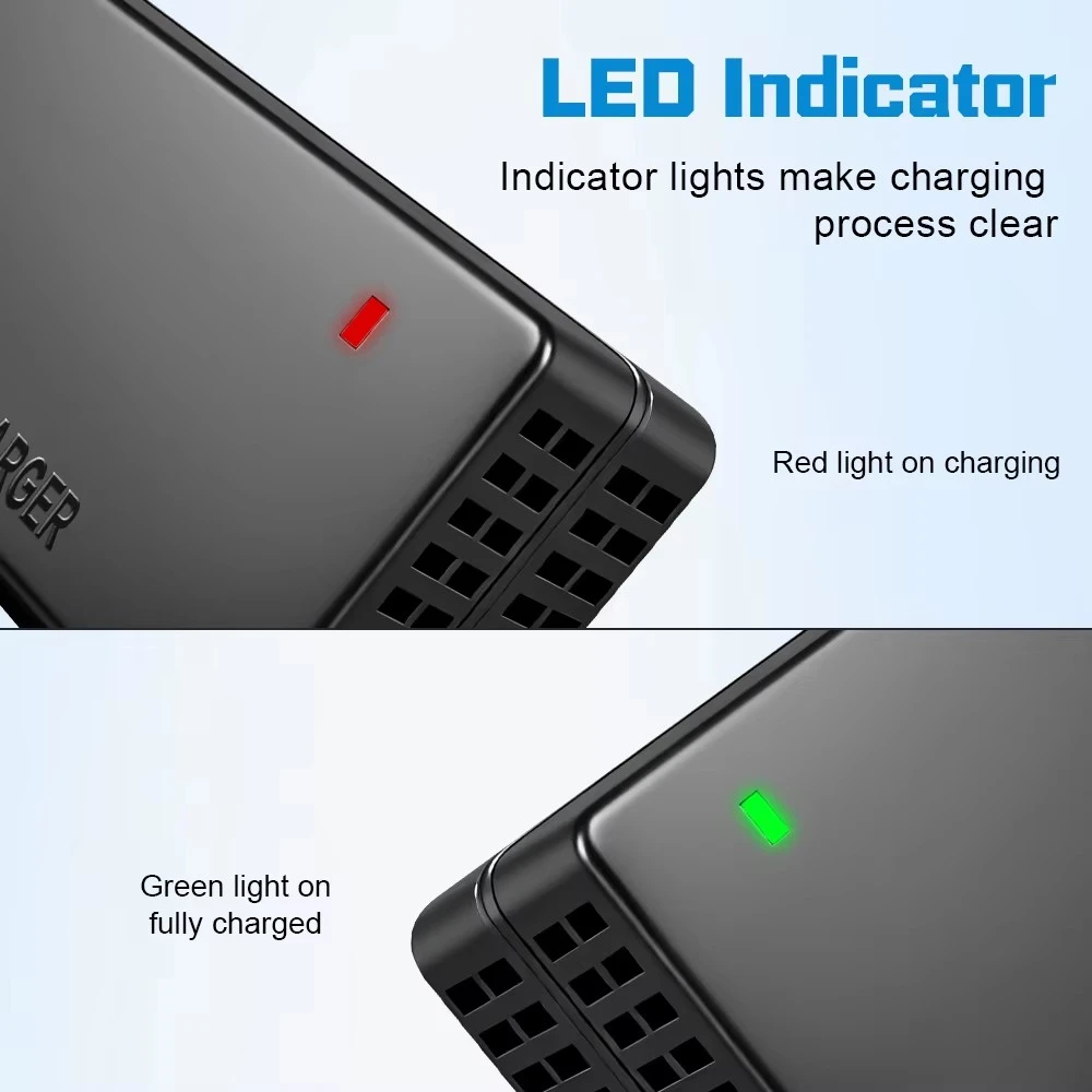 Tämän laturin ytimenä on sen älykäs latauksen ohjausjärjestelmä, joka käyttää vakiovirtaa ja vakiojännitettä (CC/CV) lataustilaa. Tämä edistynyt menetelmä varmistaa akun tehokkaan ja turvallisen latauksen: vakiovirtavaihe tuottaa tasaisen 120 W:n tehon nopeaa latausta varten, kun taas vakiojännitevaihe vähentää vähitellen virtaa ylilatauksen estämiseksi, mikä pidentää litiumakun kokonaiskäyttöikää.