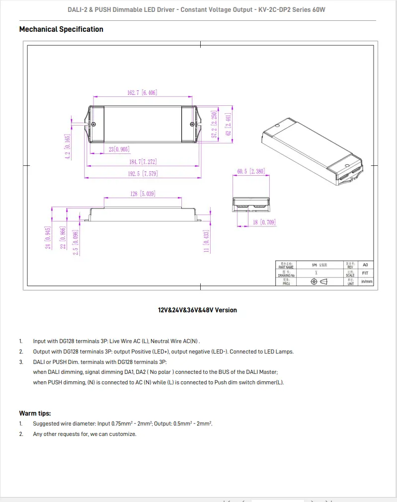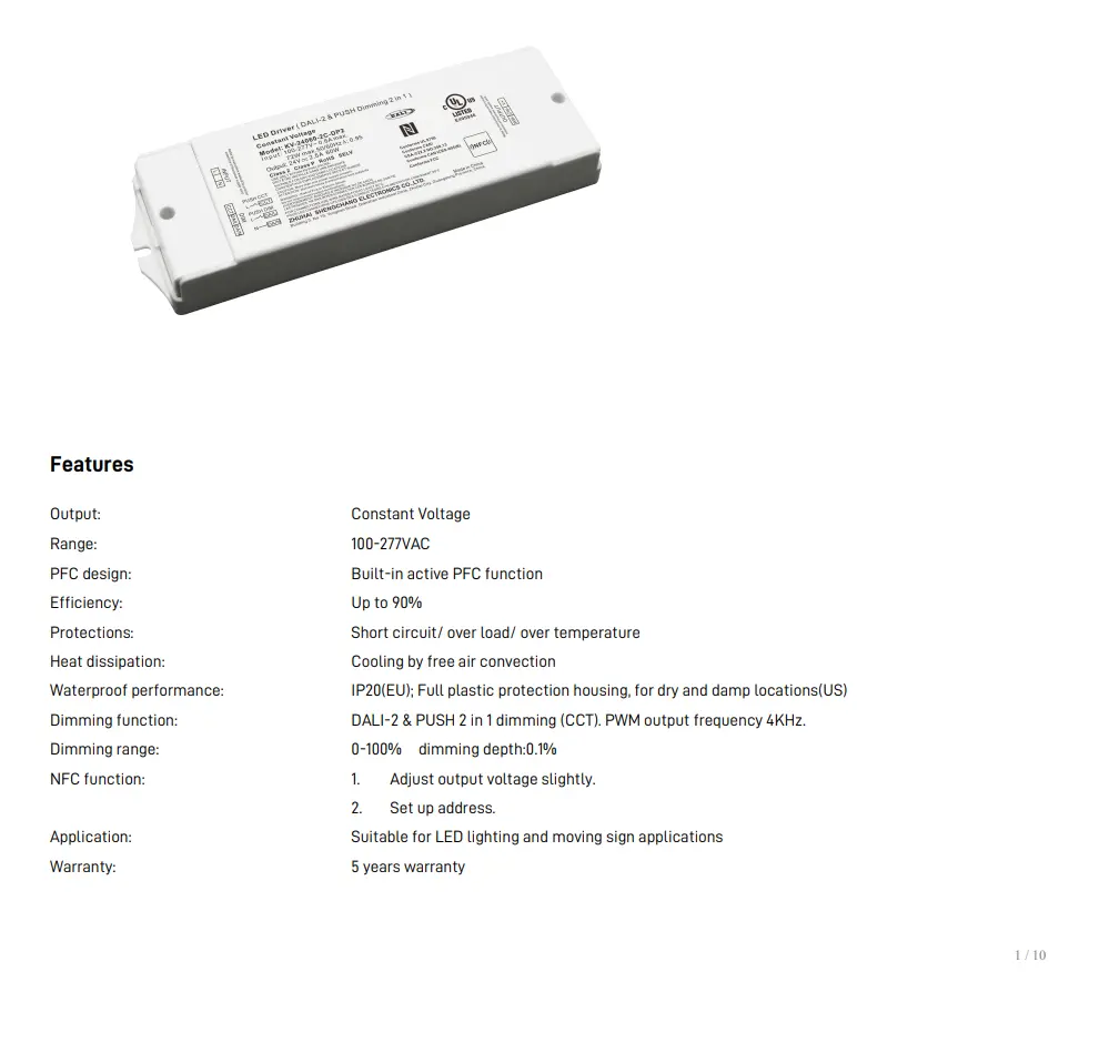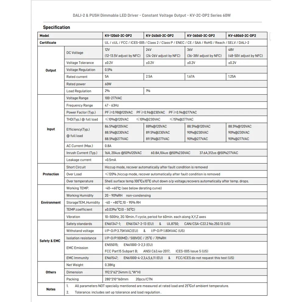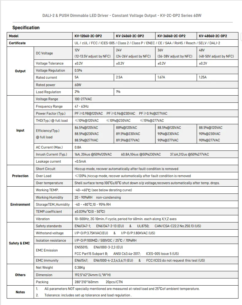 Himmennystoiminto: DALI-2 & PUSH 2 in 1 himmennys (CCT). PWM-lähtötaajuus 4KHz.