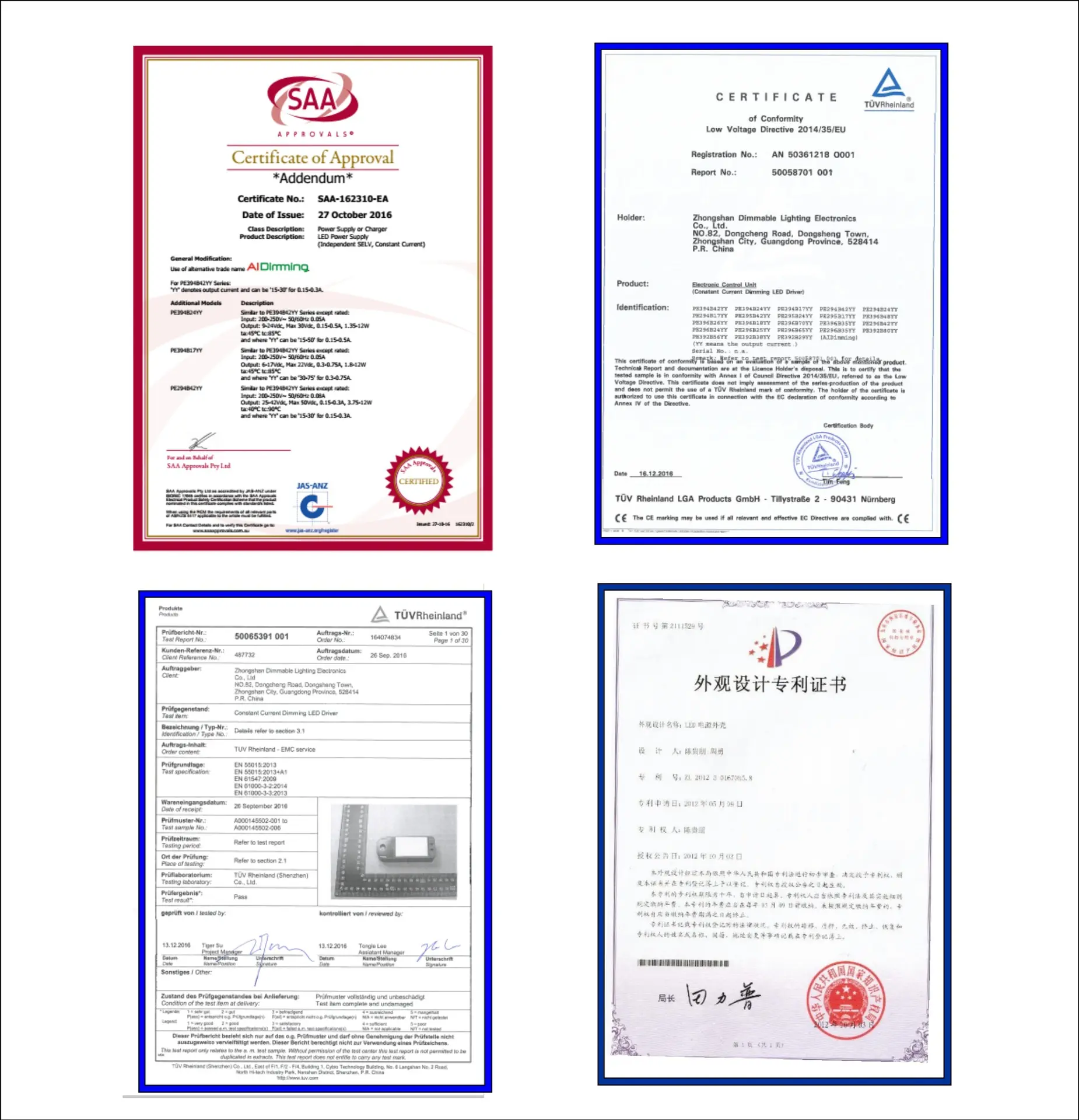 EN61347-1; EN61347-2-13 (EU) & UL8750; CAN/CSA-C22.2 No.250.13 (USA) |
