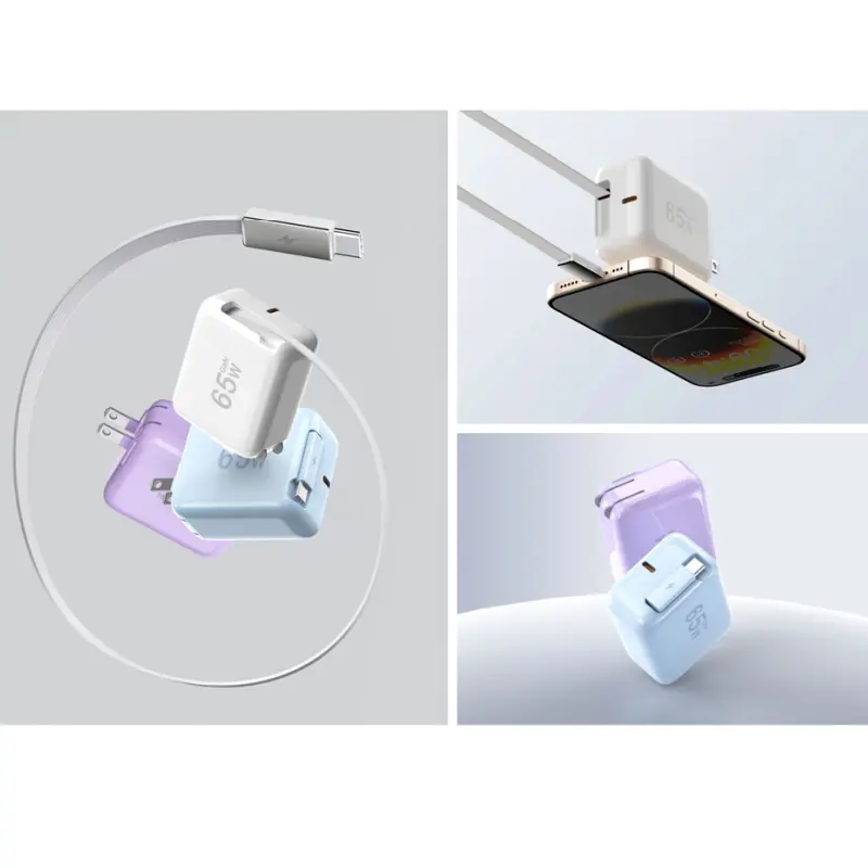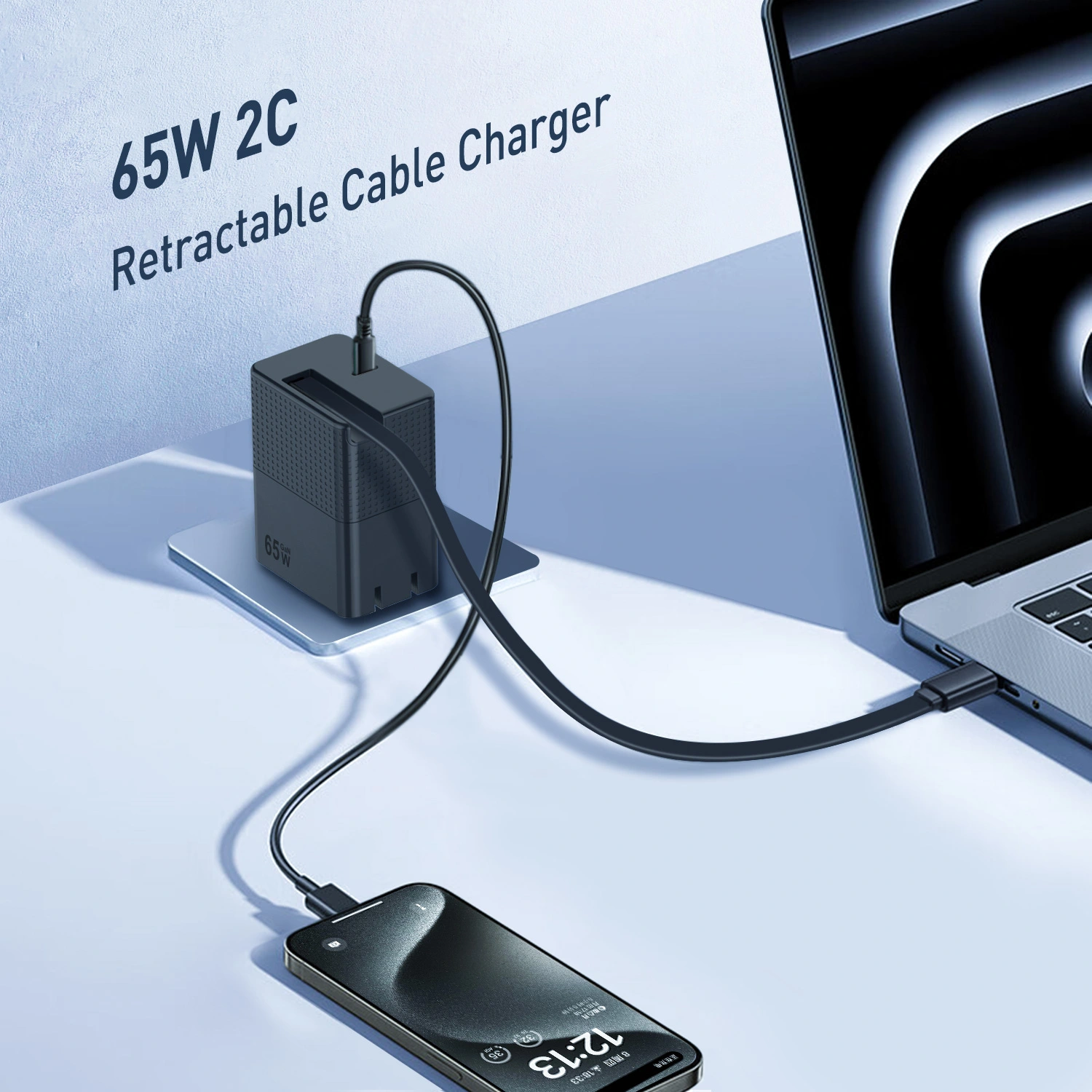 65 W PD-laturi vedettävällä usb-c-kaapelilla |