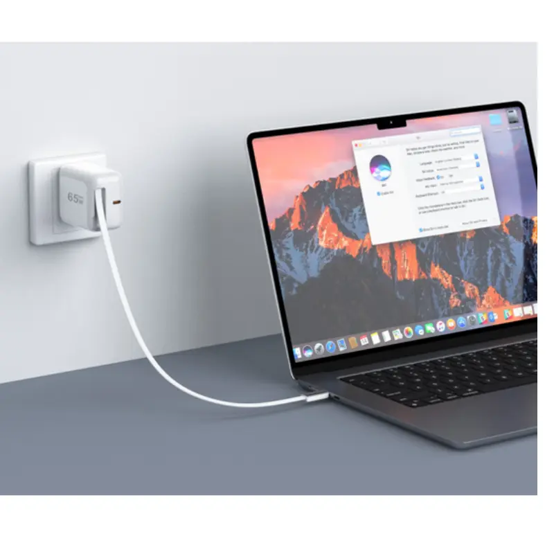 65 W nopea virransyöttö: Latautuu nopeasti kannettaville tietokoneille, tableteille ja älypuhelimille edistyneellä PD 3.0 -tekniikalla ja lataa MacBook Pron 50 %:iin vain 45 minuutissa.