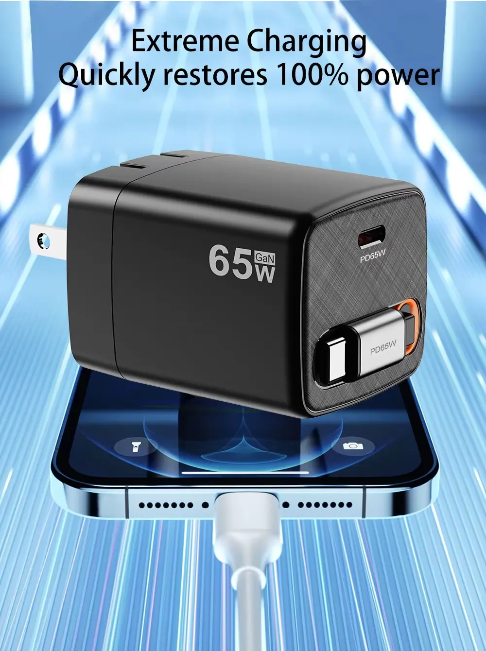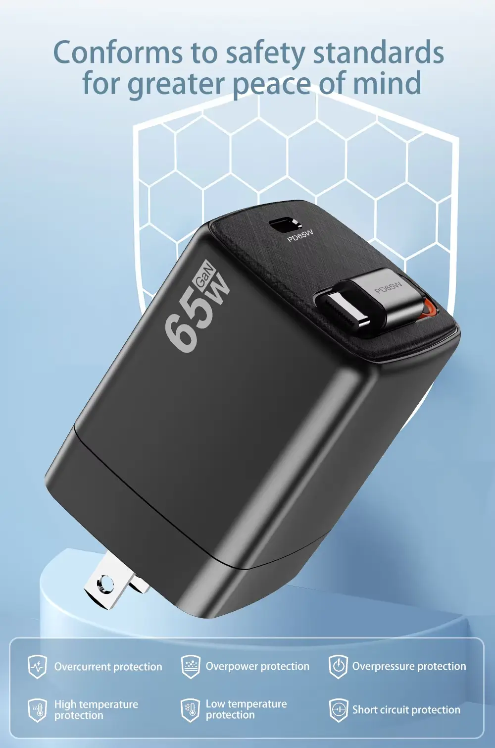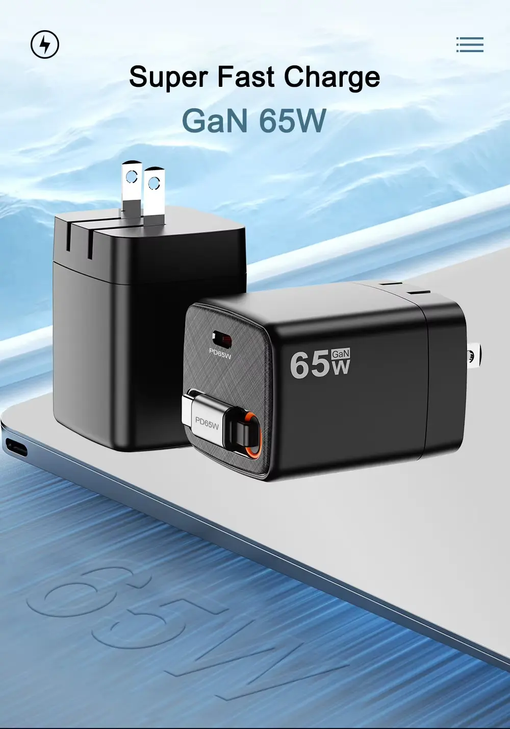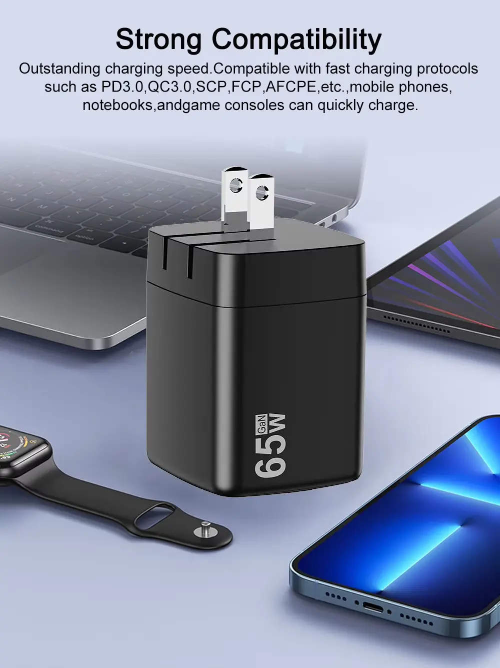 Mukautettava Logo Mini 65 W PD Gan USB C -laturi Taitettava US-pistoke USB-matkasovitin puhelimen laturi |