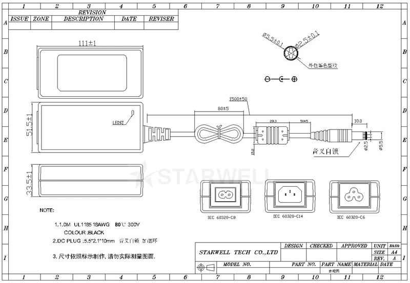 OEM: DC-pään koko, kaapelin pituus, tuotteen väri, LOGO jne