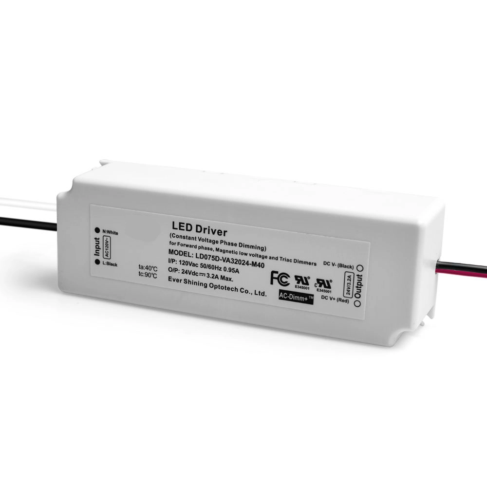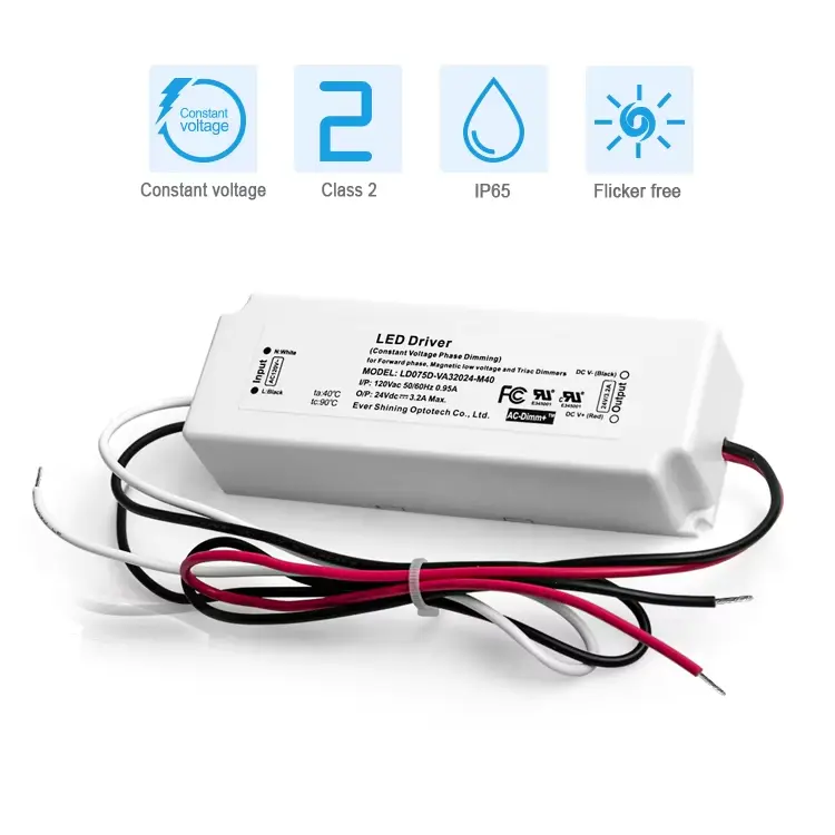 75 W vakiojännite LED-ohjain TRIAC-himmenyksellä • Yhteensopivuus: Toimii useimpien tavallisten TRIAC/hehkulampputyyppisten himmentimien kanssa. • Vakaa lähtö: vakiojännite (CV) 12 V tai 24 V LED-järjestelmille. • Smooth Control: Mahdollistaa täyden alueen, välkkymättömän himmentämisen. • Vankka suojaus: Sisäänrakennetut suojat sähkövikoja vastaan. • Tyypillinen käyttö: Täydellinen himmennettäville LED-nauhoille, moduuleille ja kiskovalaisimille.
