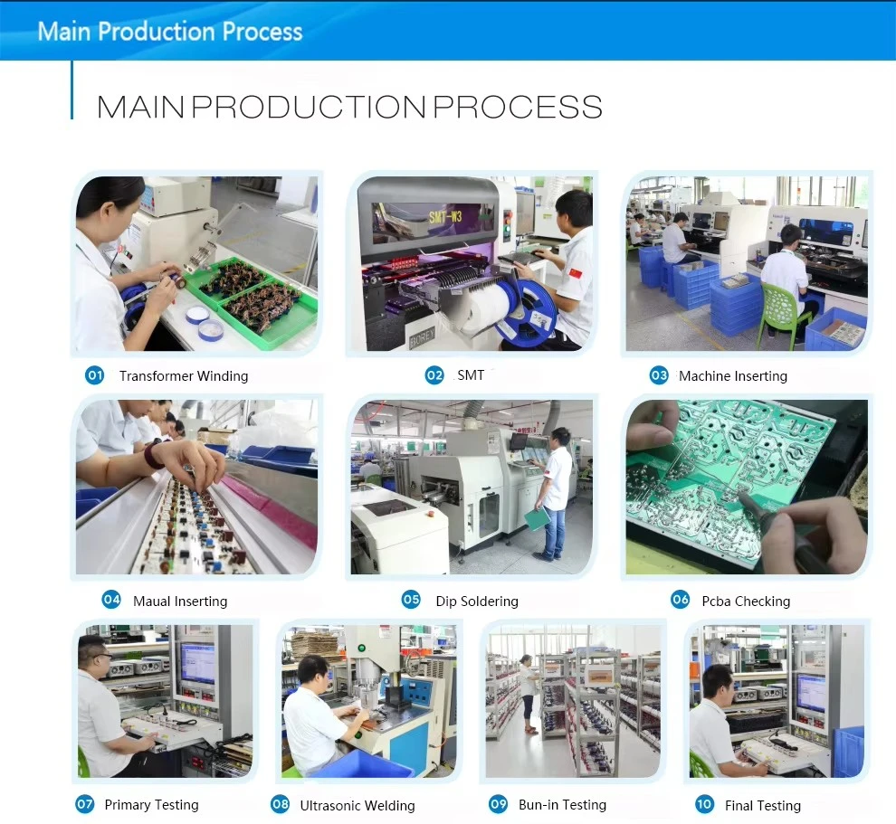 V: Olemme 0-600 W:n kytkentävirtalähteen toimittaja, mukaan lukien seinäpistorasovitin, akkulaturi, pöytäkoneen sovitin, kytkentävirtalähde, yleinen virtalähde, USB-laturi ja niin edelleen.