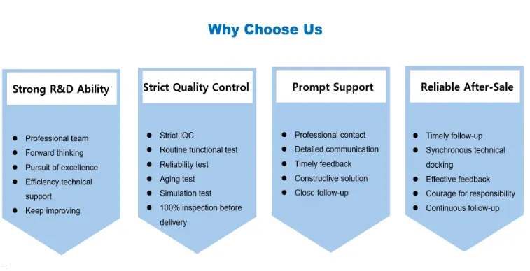 Tuotteemme noudattavat tiukasti kansainvälisiä standardeja ja korkeita alan standardeja suunnittelusta testaukseen ja massatuotantoon, ja ne noudattavat kansainvälisiä standardeja, kuten CE, FCC, RoHS, ETL jne. varmistaakseen yhteensopivuuden ja vaatimustenmukaisuuden maailmanlaajuisilla markkinoilla.