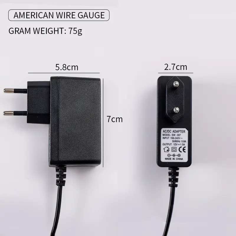 Starwellin korkealaatuinen EU-seinälle asennettava hakkurivirtasovitin on pienikokoinen, tehokas, seinään kytkettävä hakkurivirtasovitin, joka on suunniteltu muuttamaan vaihtovirta (AC) tavallisesta pistorasiasta vakaaksi ja säädellyksi 12 voltin tasavirtalähdöksi. Maksimilähtöteho 1,5 ampeeria.