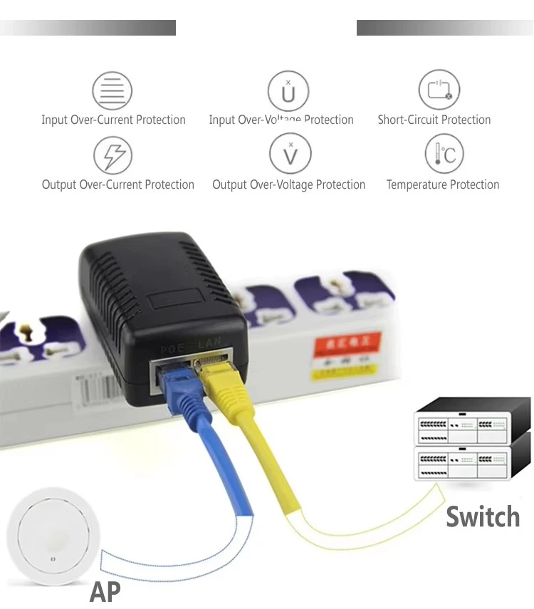 Tämä injektori on täysin yhteensopiva IEEE 802.3.af/at/bt PoE++ -standardien kanssa, ja se takaa tehokkaan virransyötön useissa PoE-yhteensopivissa laitteissa. Plug-in-suunnittelussa on kompakti muotokerroin tilaa säästävään asennukseen, ja vaihdettavat pistokevaihtoehdot ovat saatavilla maailmanlaajuisille markkinoille.