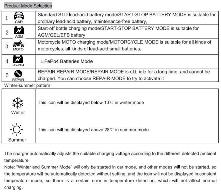 Laaja akkutyyppituki: Yhteensopiva eri akkukemian kanssa, mukaan lukien Standard Flooded (märkä), AGM (absorbenttilasimatto), geeli- ja kalsiumparistot, mikä varmistaa optimaalisen latauksen jokaiselle tietylle tyypille.