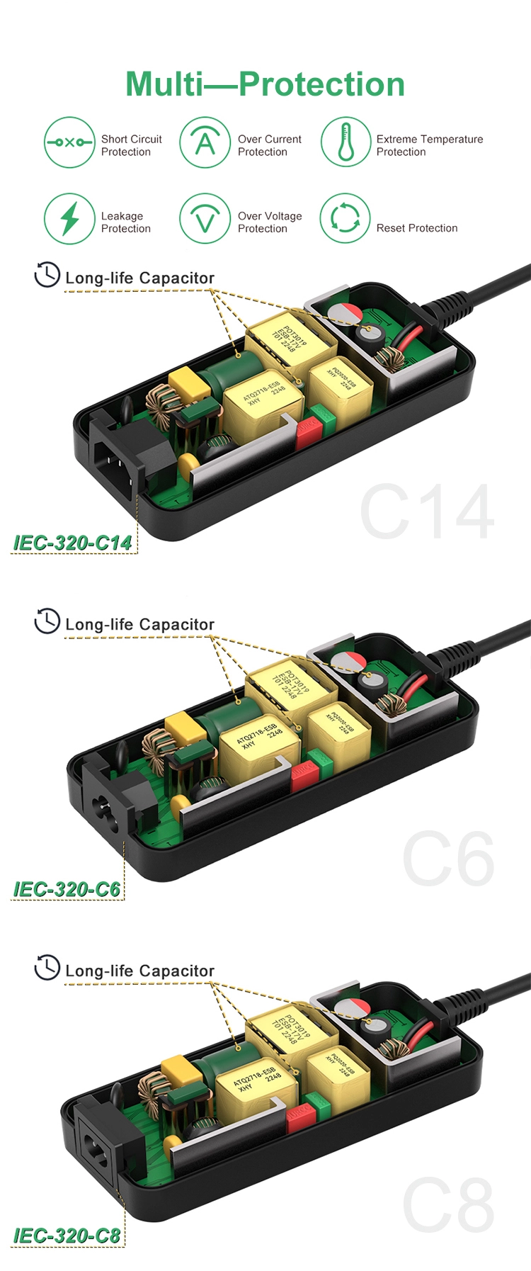 * Yleisliittimet: US/EU/AU/UK/JP ja paljon muuta