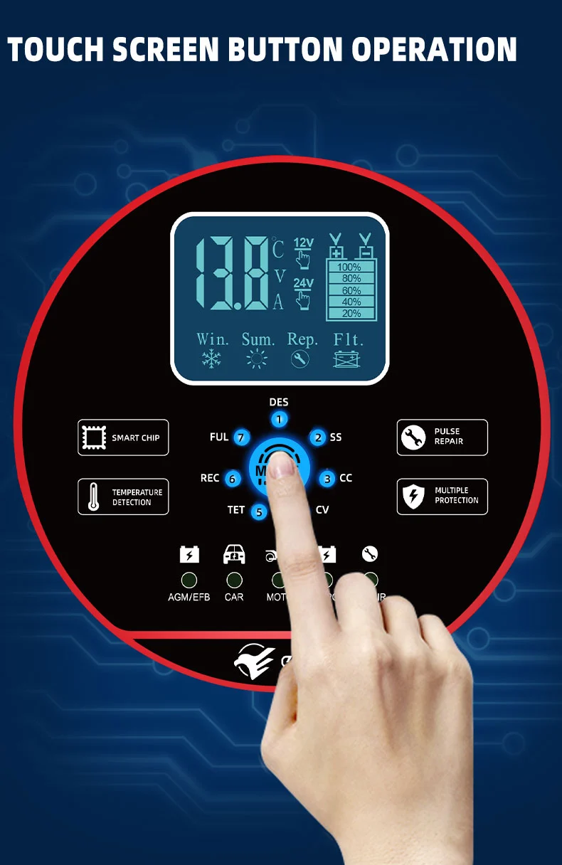 Tässä laturissa on innovatiivinen kompakti muotoilu ja teräväpiirto LCD-näyttö, joka näyttää jännitteen, virran, lämpötilan, latauksen edistymisen ja akun tilan reaaliajassa, mikä tekee toiminnan selkeäksi yhdellä silmäyksellä. Siinä on sisäänrakennettu pulssin korjaustoiminto, joka voi aktivoida ja korjata vanhoja akkuja, mikä pidentää niiden käyttöikää. Täysautomaattisena älykäs laturina TK-1500 tukee "plug and unohtaa" -toimintoa: se tunnistaa automaattisesti akun jännitteen, valitsee lataustilan ja siirtyy kelluvan latauksen ylläpitotilaan täyden latauksen jälkeen estääkseen ylilatauksen. Se sopii erinomaisesti pitkiä aikoja pysäköityjen ajoneuvojen tai kausittaisten laitteiden, kuten ruohonleikkurien ja veneiden, akkuhuoltoon.