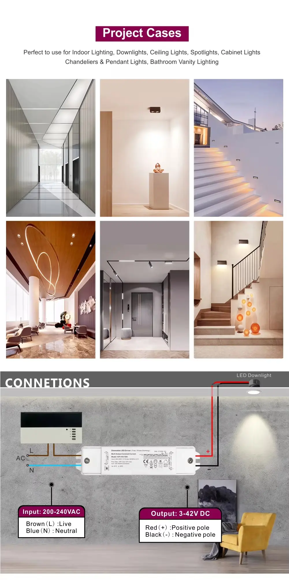 Vakaa ja suojaava vakiovirta: Ylläpitää tarkan, tasaisen virran ulostulon LED-moduuleillesi, mikä varmistaa tasaisen kirkkauden, värien tasaisuuden ja pidennetyn LEDin käyttöiän suojaamalla virran vaihteluilta ja ylijännitteiltä.