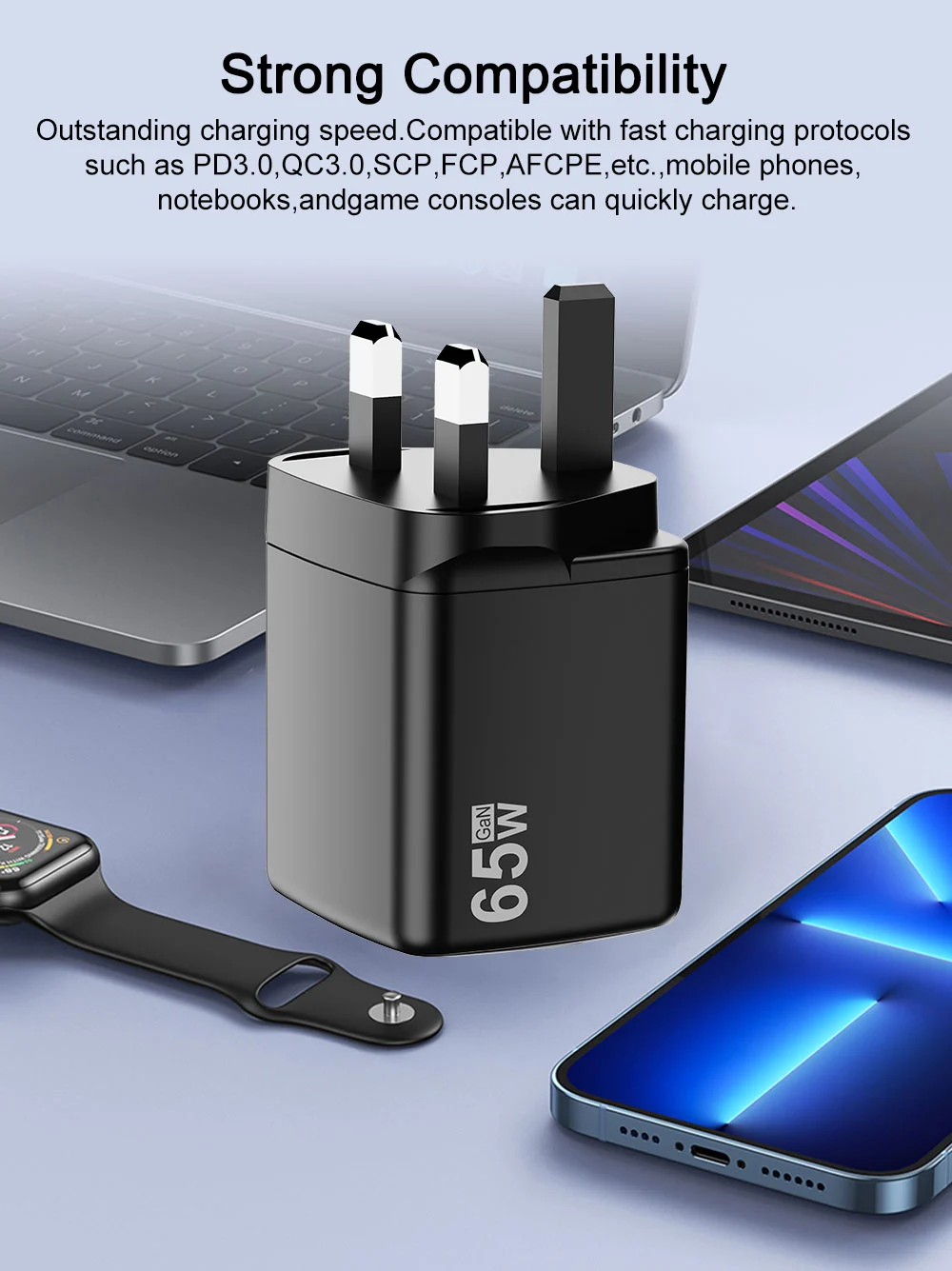 STARWELL, luotettu kiinalainen valmistaja, toimittaa tämän korkealaatuisen ja edullisen Iso-Britannian pistoketyyppisen 65 watin pikalaturin.